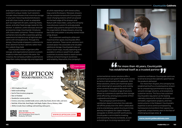 For customers wanting to utilize and maximize their space , Countryside offers corner solutions . These corner solutions turn wasted space into accessible and valuable additional storage . Countryside ’ s take on classic Susan trays , visually appealing and available in white or wood finish , enable customers to access hard-to-reach corners without compromising on sturdiness and reliability . Meanwhile , the company ’ s