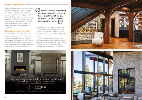 When asked about any projects in the pipeline , Carrie shares that the most notable are Payette Lake and Whitetail . A quick glance through the company ’ s online portfolio will show that quite a few of the homes in 44
