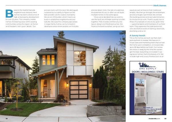 “ Once the homes are built , we then start putting them to market . We have an inhouse sales and marketing team that will sell the home upon completion , or occasionally up to 90 days before we finish . Our homes are move-in ready by the time the owners get the keys . Everything is included in our signature homes , that ’ s the beauty of it . We include high-end , luxury finishes such as air modernhb . com 59