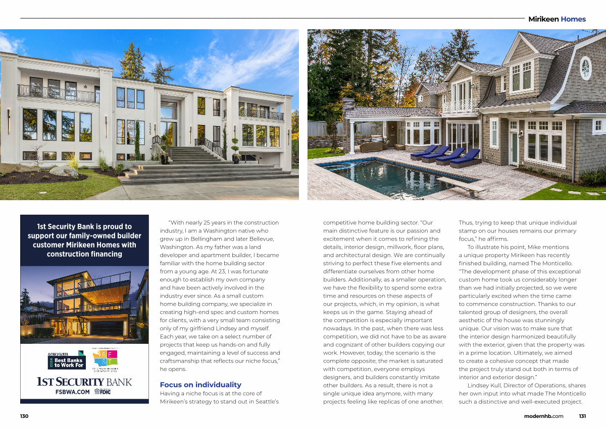 1st Security Bank is proud to support our family-owned builder customer Mirikeen Homes with construction financing