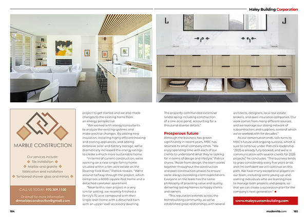 “ In terms of current construction, we’ re working on a new single-family home situated within a ten-acre estate on the Roaring Fork River,” Patrick reveals.“ We’ re around halfway through the project, which comprises a 6000-square-foot home and a detached caretaker apartment.