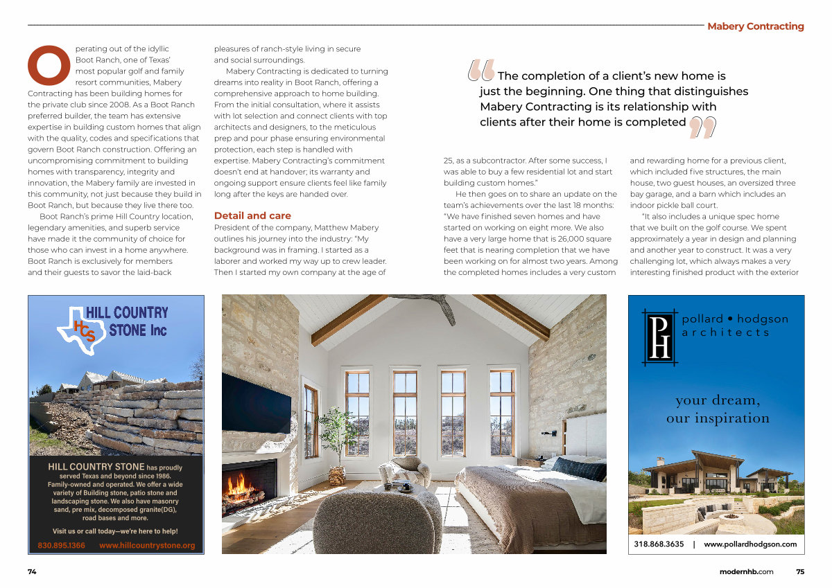 The completion of a client’ s new home is just the beginning. One thing that distinguishes Mabery Contracting is its relationship with clients after their home is completed