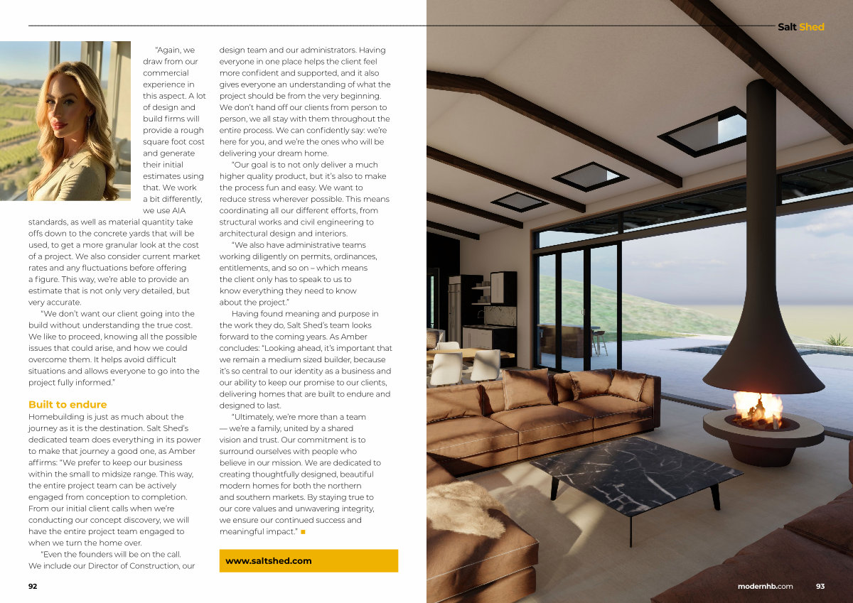 Having found meaning and purpose in the work they do, Salt Shed’ s team looks forward to the coming years. As Amber concludes:“ Looking ahead, it’ s important that we remain a medium sized builder, because it’ s so central to our identity as a business and our ability to keep our promise to our clients, delivering homes that are built to endure and designed to last.
