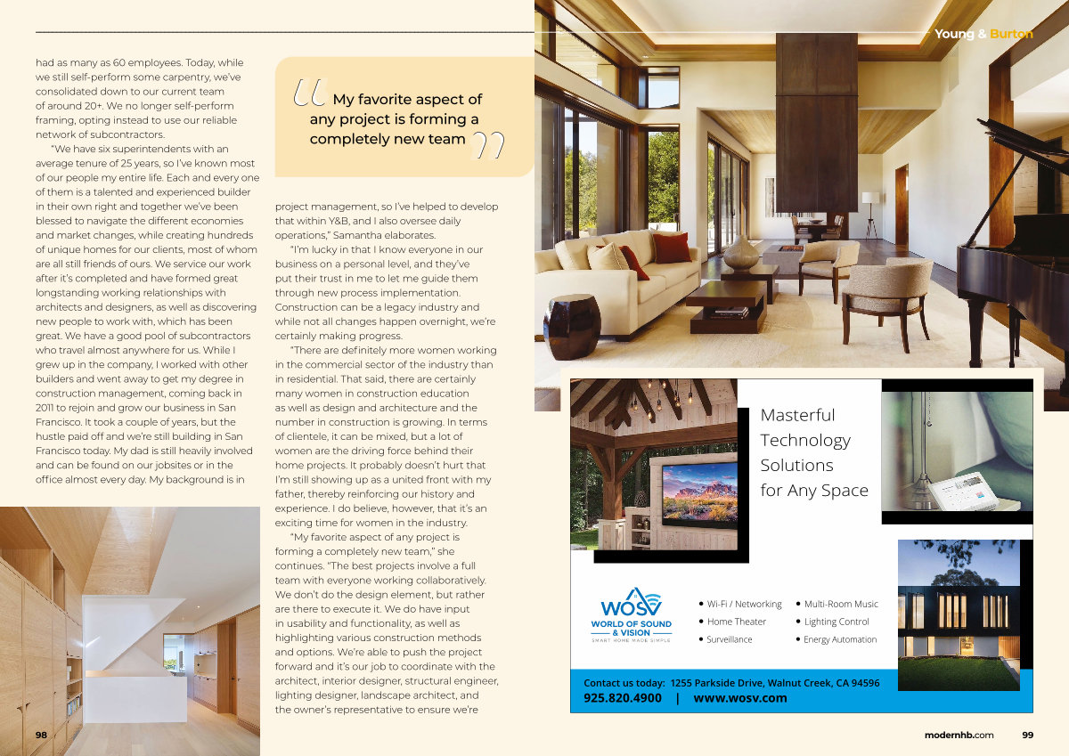 “ We have six superintendents with an average tenure of 25 years, so I’ ve known most of our people my entire life. Each and every one of them is a talented and experienced builder in their own right and together we’ ve been blessed to navigate the different economies and market changes, while creating hundreds of unique homes for our clients, most of whom are all still friends of ours. We service our work after it’ s completed and have formed great longstanding working relationships with architects and designers, as well as discovering new people to work with, which has been great. We have a good pool of subcontractors who travel almost anywhere for us. While I grew up in the company, I worked with other builders and went away to get my degree in construction management, coming back in 2011 to rejoin and grow our business in San Francisco. It took a couple of years, but the hustle paid off and we’ re still building in San Francisco today. My dad is still heavily involved and can be found on our jobsites or in the office almost every day. My background is in