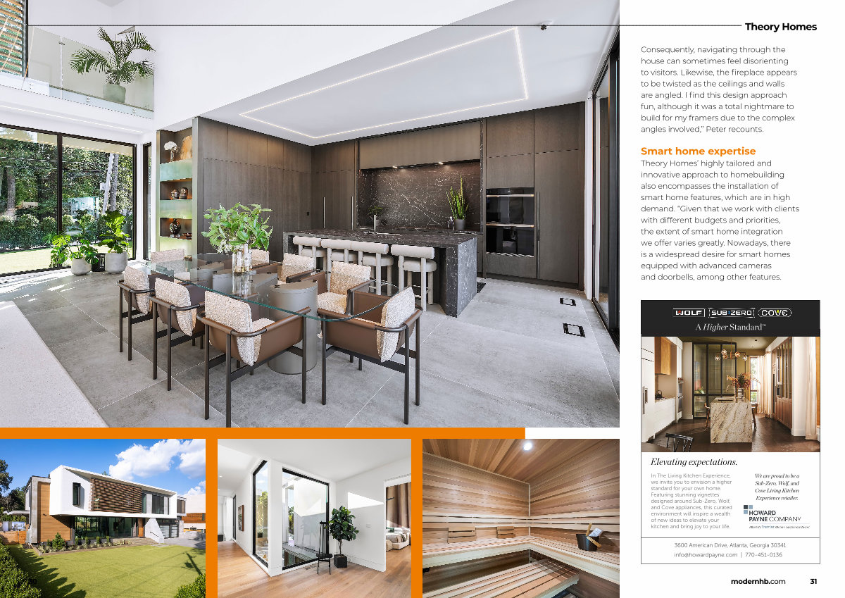 Theory Homes’ highly tailored and innovative approach to homebuilding also encompasses the installation of smart home features, which are in high demand.“ Given that we work with clients with different budgets and priorities, the extent of smart home integration we offer varies greatly. Nowadays, there is a widespread desire for smart homes equipped with advanced cameras