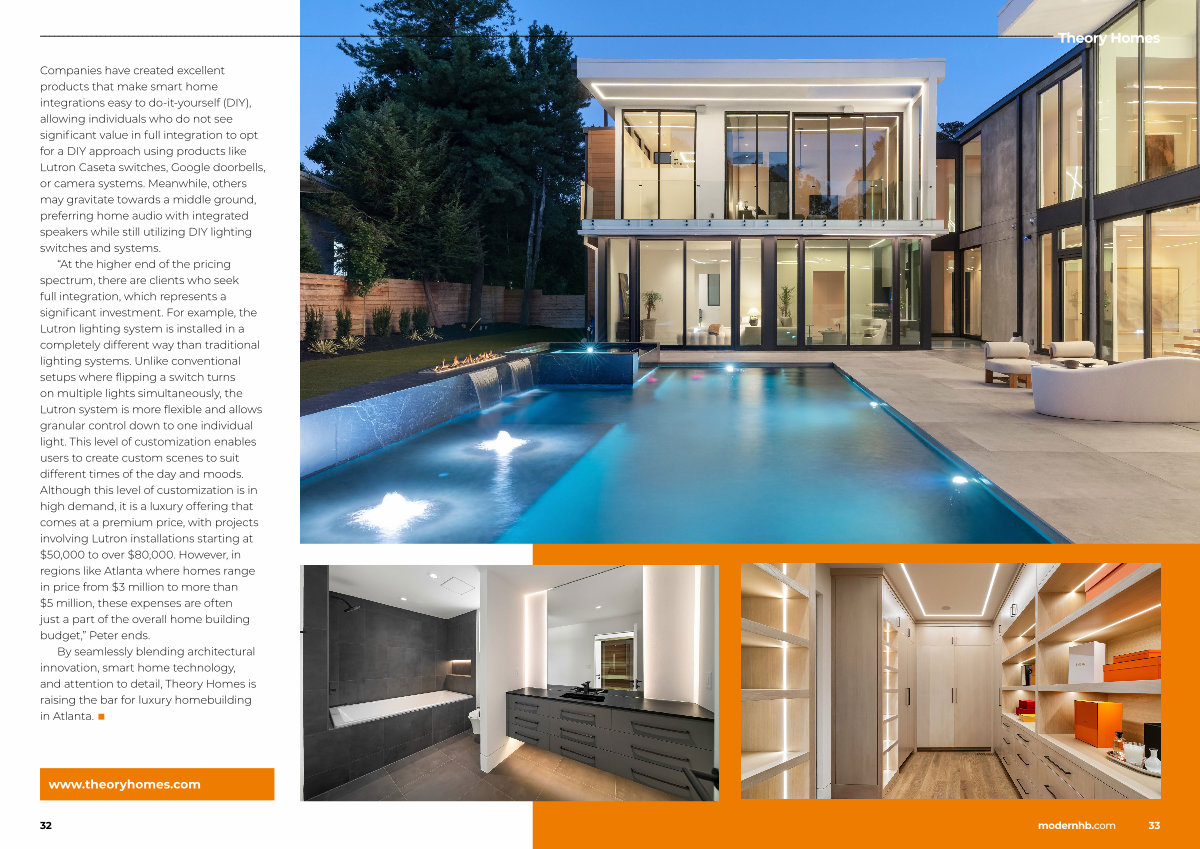 By seamlessly blending architectural innovation, smart home technology, and attention to detail, Theory Homes is raising the bar for luxury homebuilding in Atlanta. ■