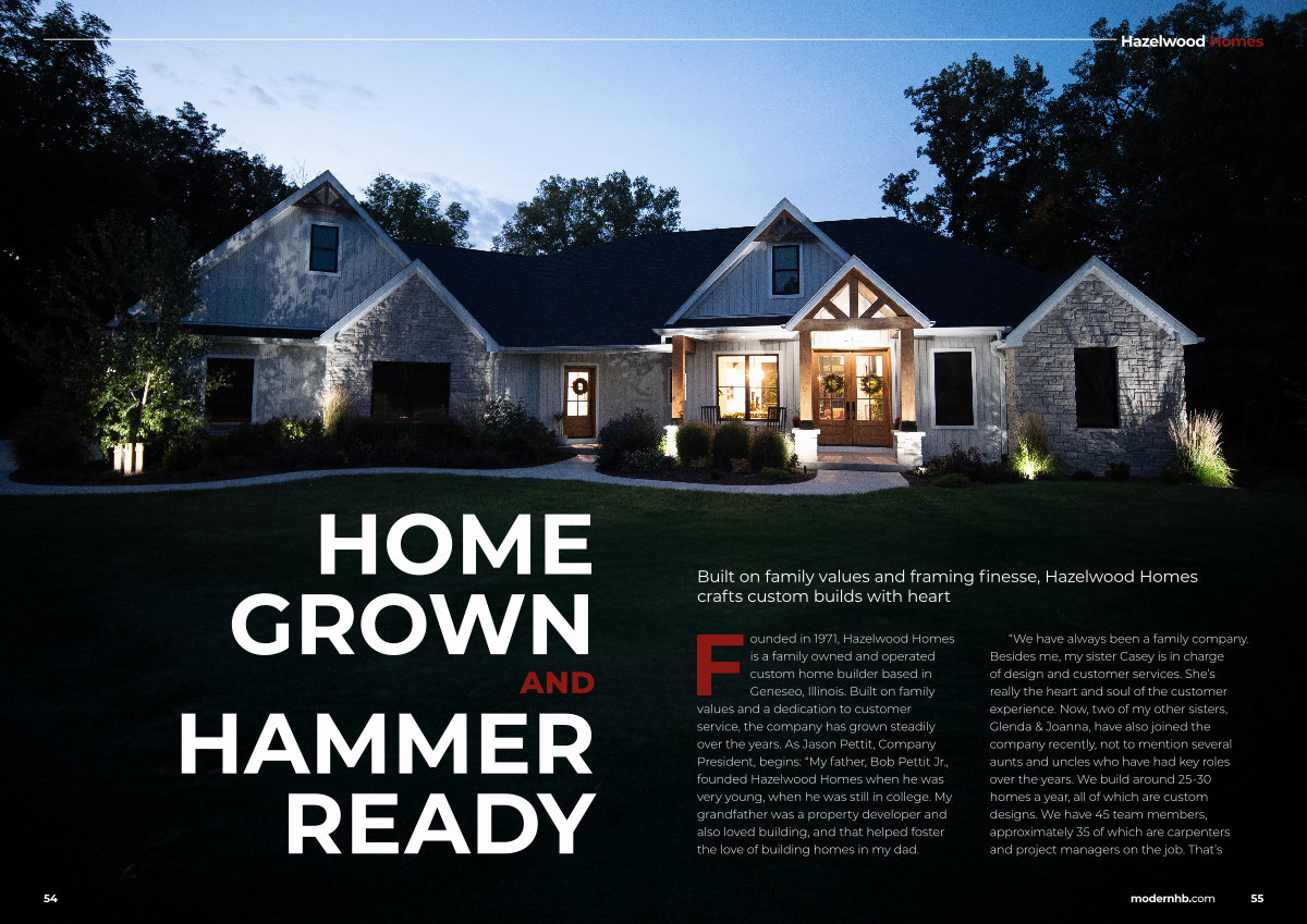 Founded in 1971, Hazelwood Homes is a family owned and operated custom home builder based in Geneseo, Illinois. Built on family values and a dedication to customer service, the company has grown steadily over the years. As Jason Pettit, Company President, begins:“ My father, Bob Pettit Jr., founded Hazelwood Homes when he was very young, when he was still in college. My grandfather was a property developer and also loved building, and that helped foster the love of building homes in my dad.
