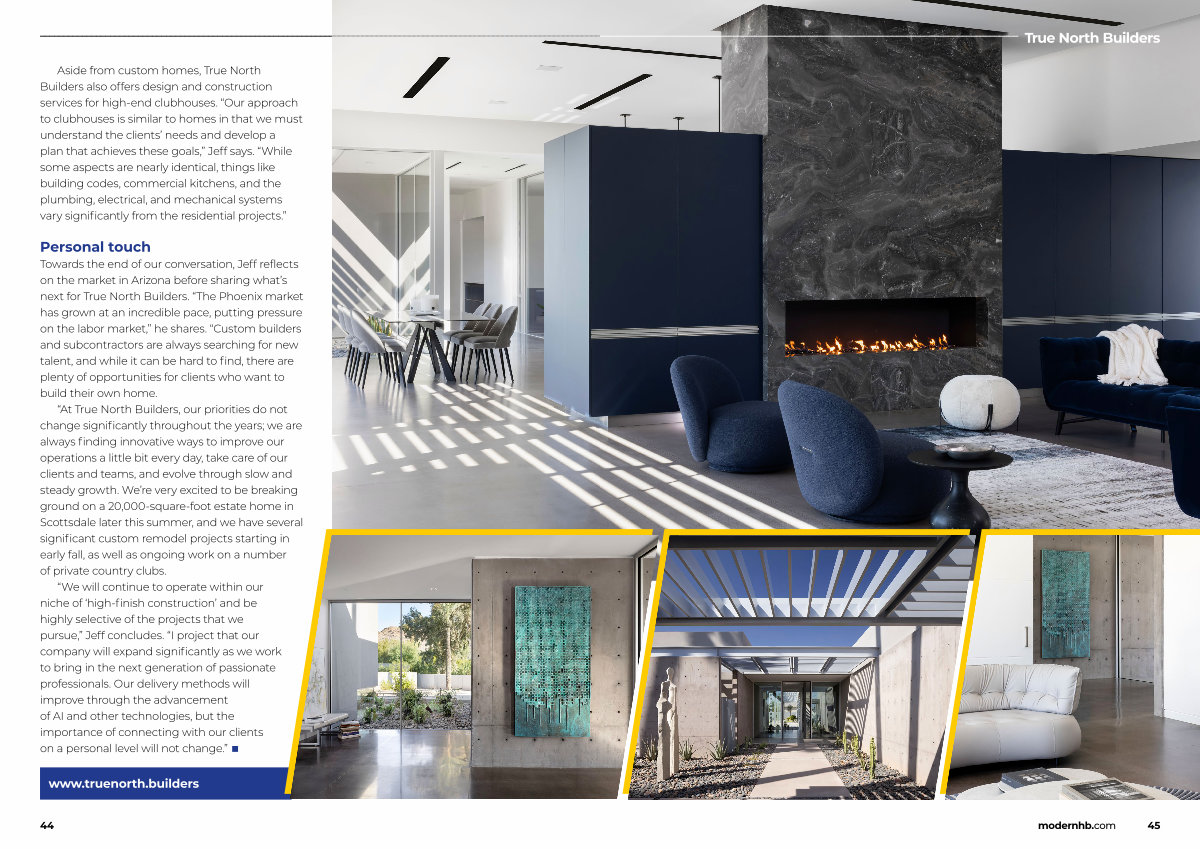 Towards the end of our conversation, Jeff reflects on the market in Arizona before sharing what’ s next for True North Builders.“ The Phoenix market has grown at an incredible pace, putting pressure on the labor market,” he shares.“ Custom builders and subcontractors are always searching for new talent, and while it can be hard to find, there are plenty of opportunities for clients who want to build their own home.
