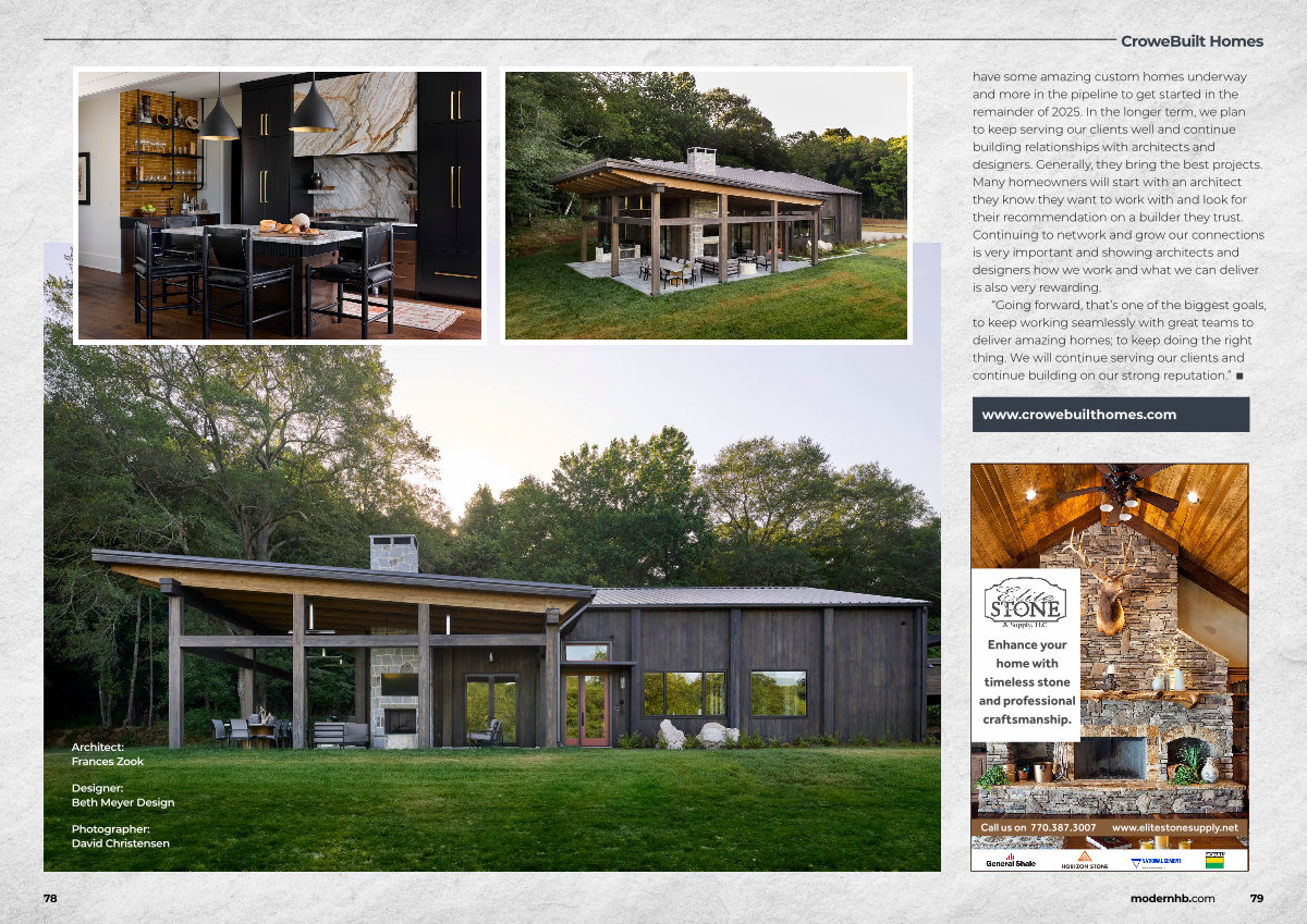 have some amazing custom homes underway and more in the pipeline to get started in the remainder of 2025. In the longer term, we plan to keep serving our clients well and continue building relationships with architects and designers. Generally, they bring the best projects. Many homeowners will start with an architect they know they want to work with and look for their recommendation on a builder they trust. Continuing to network and grow our connections is very important and showing architects and