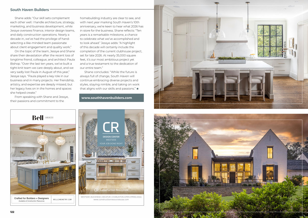 homebuilding industry are clear to see, and with next year marking South Haven’ s 10th anniversary, we’ re keen to hear what 2026 has in store for the business. Shane reflects:“ Ten years is a remarkable milestone, a chance to celebrate what we’ ve accomplished and to look ahead.” Jessye adds:“ A highlight of this decade will certainly include the completion of the current clubhouse project, set for late 2026. At nearly 35,000 square feet, it’ s our most ambitious project yet and a true testament to the dedication of our entire team.”