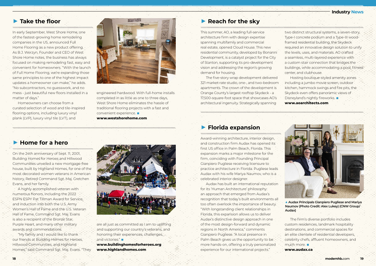 are all just as committed as I am to uplifting and supporting our country’ s veterans, and honoring their experiences, challenges, and victories.” ■ www. buildinghomesforheroes. org www. highlandhomes. com