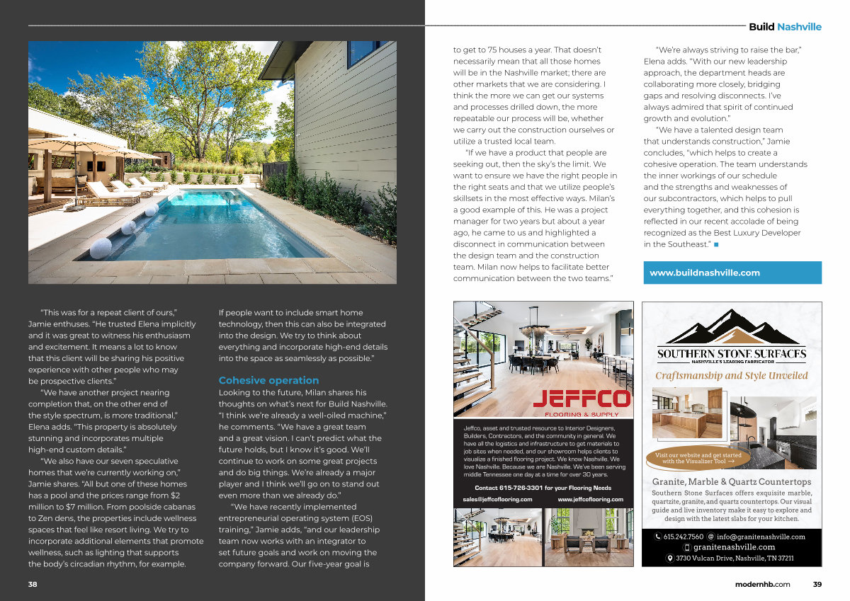 Looking to the future, Milan shares his thoughts on what’ s next for Build Nashville.“ I think we’ re already a well-oiled machine,” he comments.“ We have a great team and a great vision. I can’ t predict what the future holds, but I know it’ s good. We’ ll continue to work on some great projects and do big things. We’ re already a major player and I think we’ ll go on to stand out even more than we already do.”