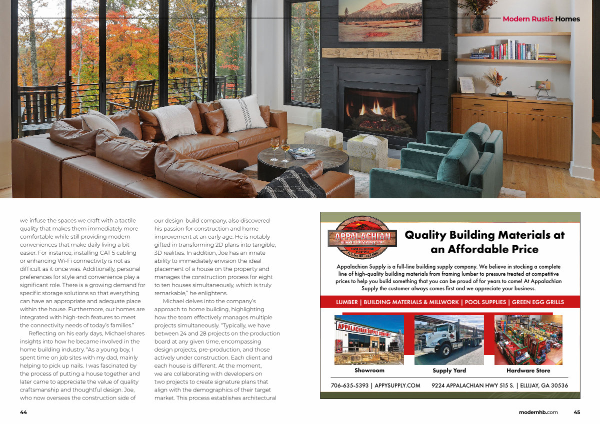 Reflecting on his early days, Michael shares insights into how he became involved in the home building industry.“ As a young boy, I spent time on job sites with my dad, mainly helping to pick up nails. I was fascinated by the process of putting a house together and later came to appreciate the value of quality craftsmanship and thoughtful design. Joe, who now oversees the construction side of our design-build company, also discovered his passion for construction and home improvement at an early age. He is notably gifted in transforming 2D plans into tangible, 3D realities. In addition, Joe has an innate ability to immediately envision the ideal placement of a house on the property and manages the construction process for eight to ten houses simultaneously, which is truly remarkable,” he enlightens.