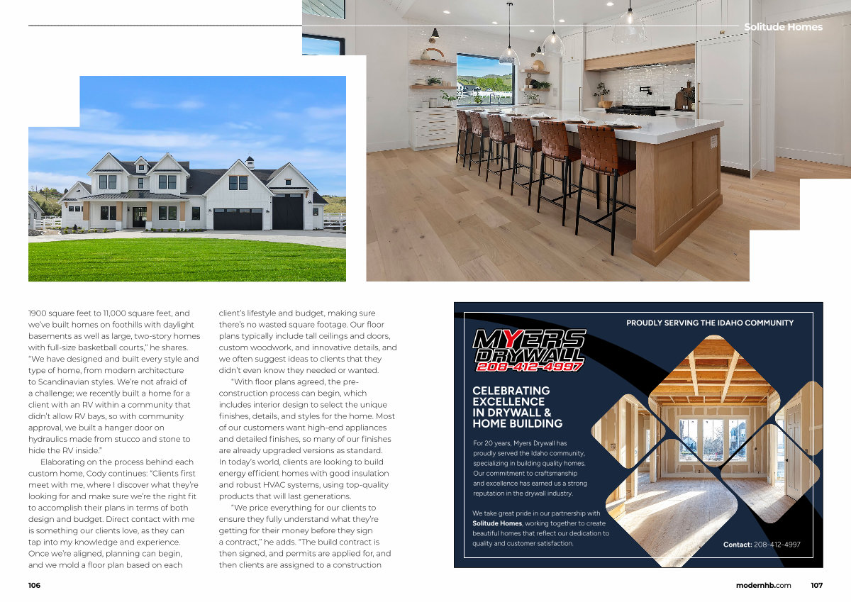 Elaborating on the process behind each custom home, Cody continues:“ Clients first meet with me, where I discover what they’ re looking for and make sure we’ re the right fit to accomplish their plans in terms of both design and budget. Direct contact with me is something our clients love, as they can tap into my knowledge and experience. Once we’ re aligned, planning can begin, and we mold a floor plan based on each