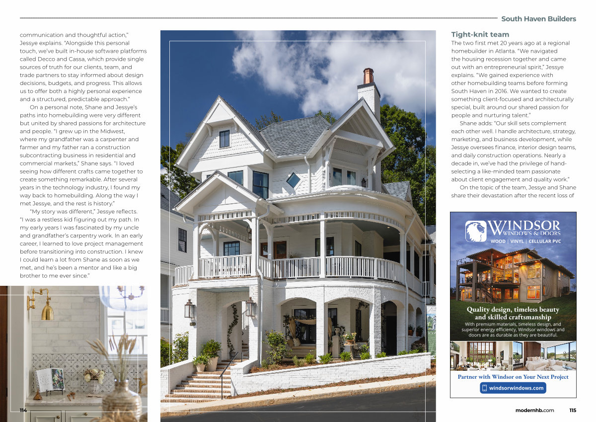 The two first met 20 years ago at a regional homebuilder in Atlanta.“ We navigated the housing recession together and came out with an entrepreneurial spirit,” Jessye explains.“ We gained experience with other homebuilding teams before forming South Haven in 2016. We wanted to create something client-focused and architecturally special, built around our shared passion for people and nurturing talent.”