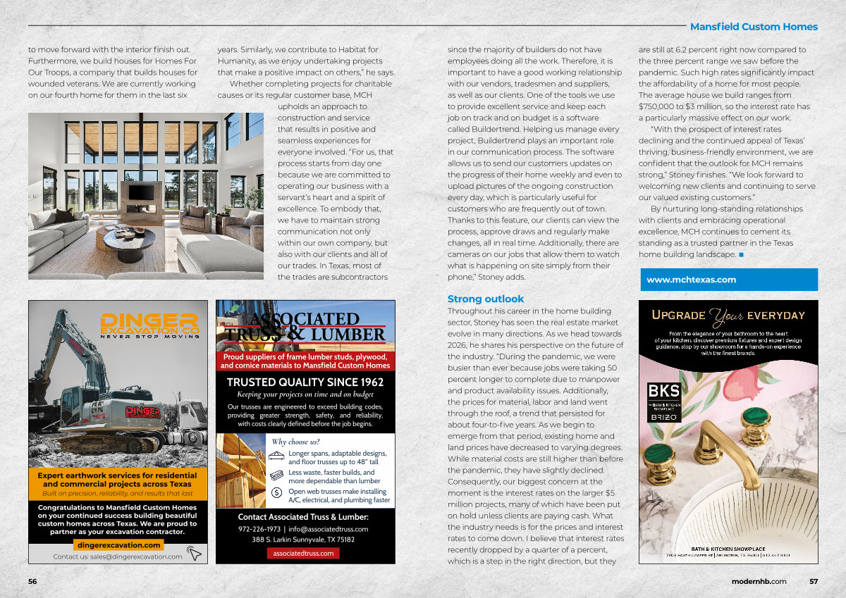 By nurturing long-standing relationships with clients and embracing operational excellence, MCH continues to cement its standing as a trusted partner in the Texas home building landscape. ■