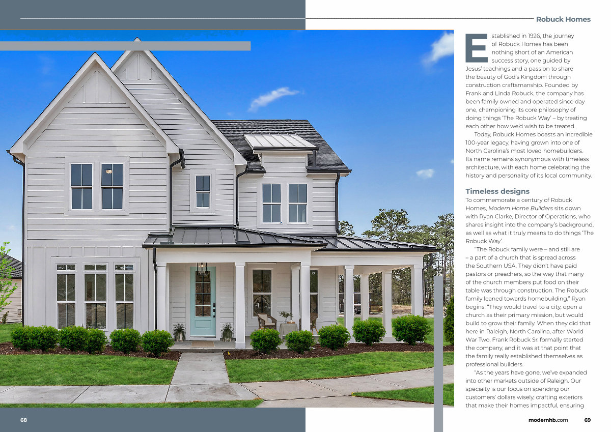 Today, Robuck Homes boasts an incredible 100-year legacy, having grown into one of North Carolina’ s most loved homebuilders. Its name remains synonymous with timeless architecture, with each home celebrating the history and personality of its local community.