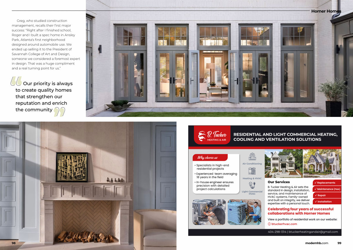 Greg, who studied construction management, recalls their first major success:“ Right after I finished school, Roger and I built a spec home in Ansley Park, Atlanta’ s first neighborhood designed around automobile use. We ended up selling it to the President of Savannah College of Art and Design, someone we considered a foremost expert in design. That was a huge compliment and a real turning point for us.”