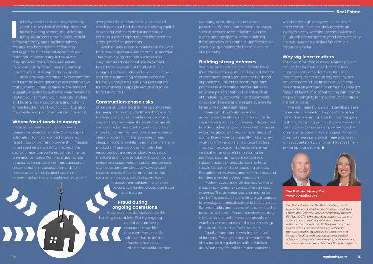 The strongest builders and developers are those who prepare for the possibility of fraud rather than assuming it could never happen to them. Designing organizations where fraud has no place to hide is an investment in the long-term success of every project. Vigilance does not mean paranoia; it means building with accountability, clarity, and trust as firmly as you lay foundations. ■