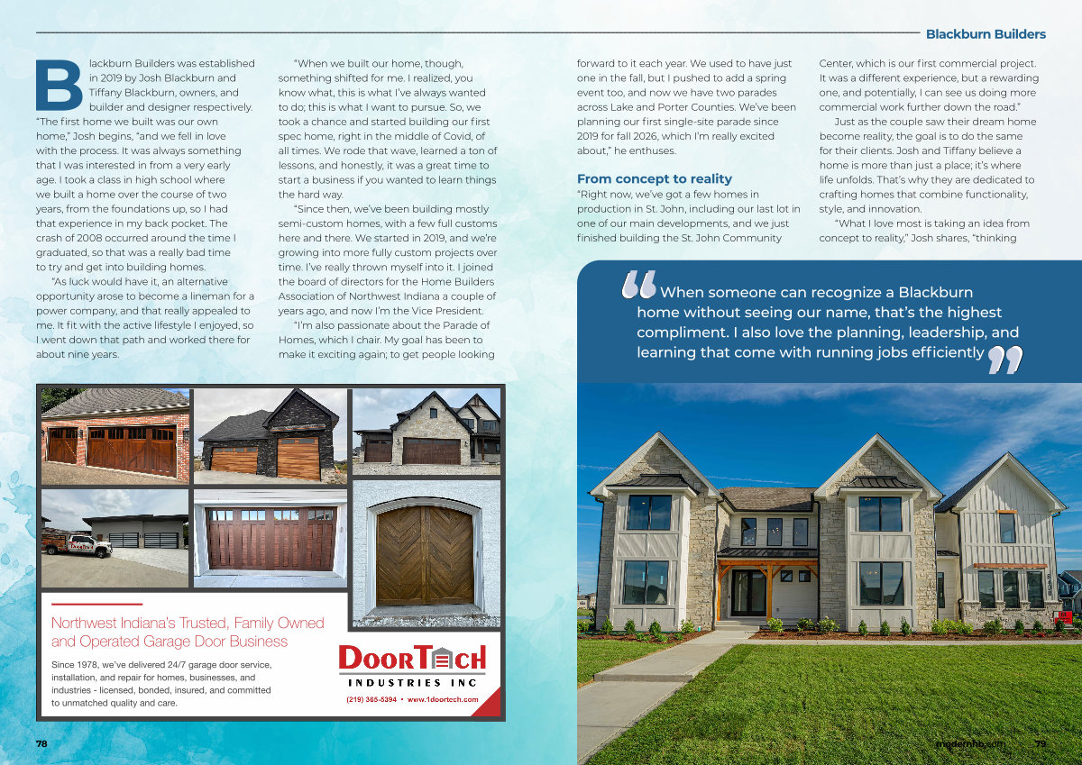“ Since then, we’ ve been building mostly semi-custom homes, with a few full customs here and there. We started in 2019, and we’ re growing into more fully custom projects over time. I’ ve really thrown myself into it. I joined the board of directors for the Home Builders Association of Northwest Indiana a couple of years ago, and now I’ m the Vice President.