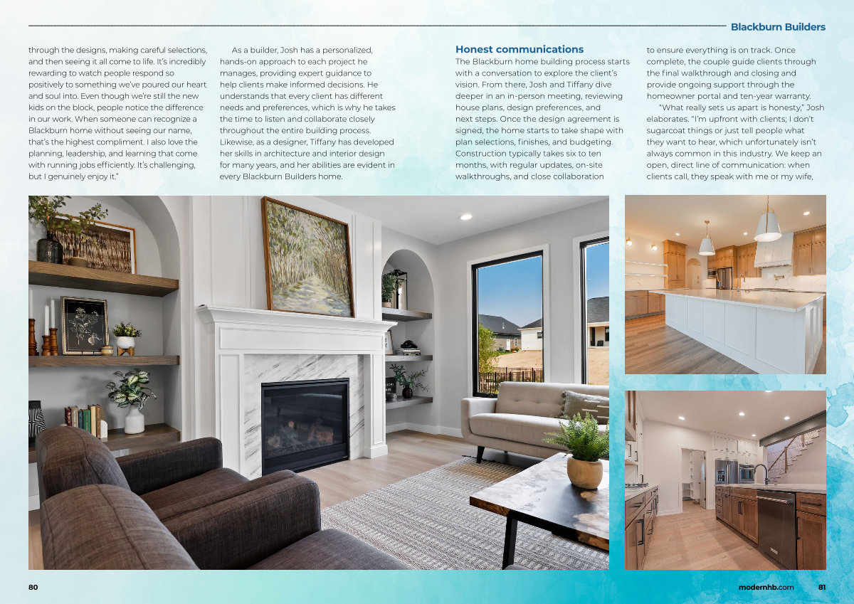 through the designs, making careful selections, and then seeing it all come to life. It’ s incredibly rewarding to watch people respond so positively to something we’ ve poured our heart and soul into. Even though we’ re still the new kids on the block, people notice the difference in our work. When someone can recognize a Blackburn home without seeing our name, that’ s the highest compliment. I also love the planning, leadership, and learning that come with running jobs efficiently. It’ s challenging, but I genuinely enjoy it.”