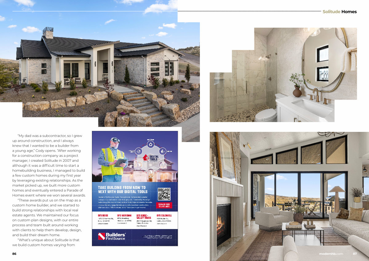 “ My dad was a subcontractor, so I grew up around construction, and I always knew that I wanted to be a builder from a young age,” Cody opens.“ After working for a construction company as a project manager, I created Solitude in 2007 and although it was a difficult time to start a homebuilding business, I managed to build a few custom homes during my first year by leveraging existing relationships. As the market picked up, we built more custom homes and eventually entered a Parade of Homes event where we won several awards.