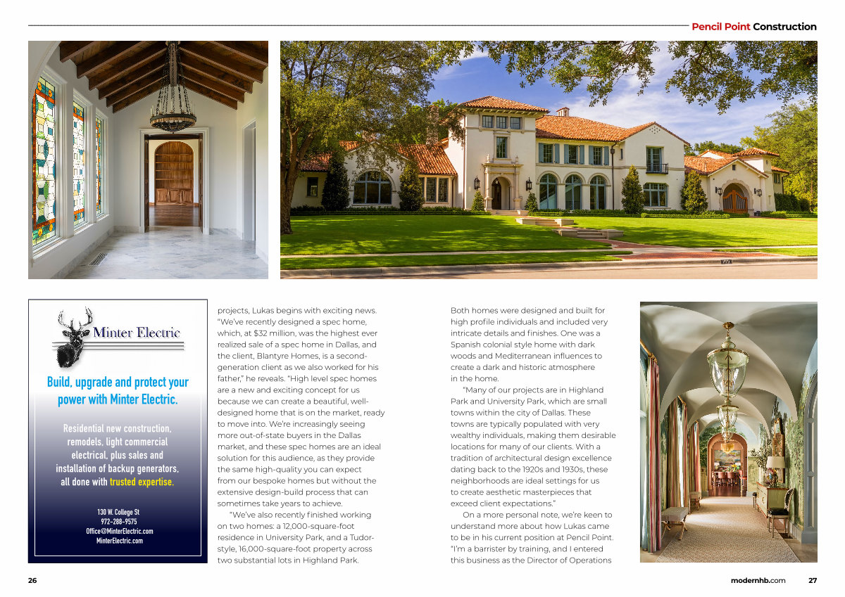 “ We’ ve also recently finished working on two homes: a 12,000-square-foot residence in University Park, and a Tudorstyle, 16,000-square-foot property across two substantial lots in Highland Park.