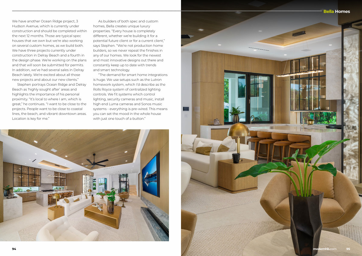 Stephen portrays Ocean Ridge and Delray Beach as‘ highly sought after’ areas and highlights the importance of his personal proximity.“ It’ s local to where I am, which is great,” he continues.“ I want to be close to the projects. People want to be close to coastal lines, the beach, and vibrant downtown areas. Location is key for me.”