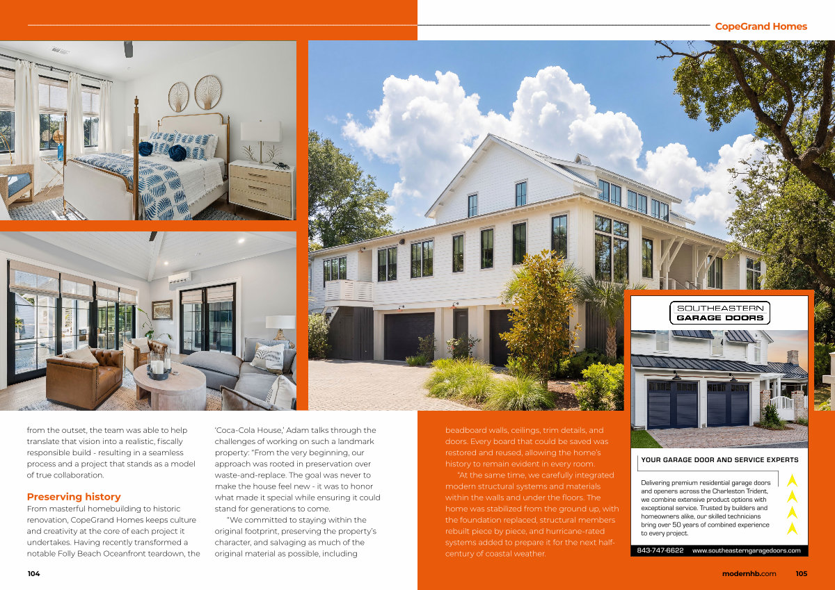 From masterful homebuilding to historic renovation, CopeGrand Homes keeps culture and creativity at the core of each project it undertakes. Having recently transformed a notable Folly Beach Oceanfront teardown, the