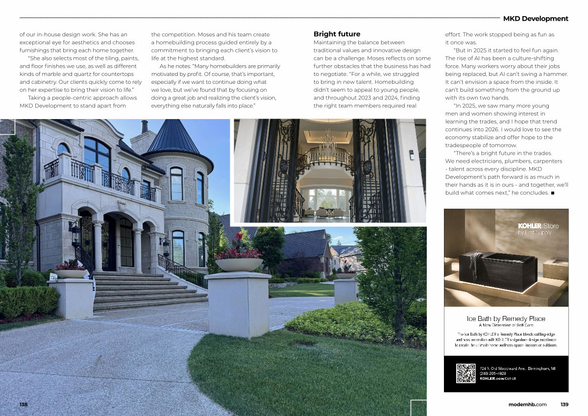 “ There’ s a bright future in the trades. We need electricians, plumbers, carpenters- talent across every discipline. MKD Development’ s path forward is as much in their hands as it is in ours- and together, we’ ll build what comes next,” he concludes. ■ modernhb. com 139