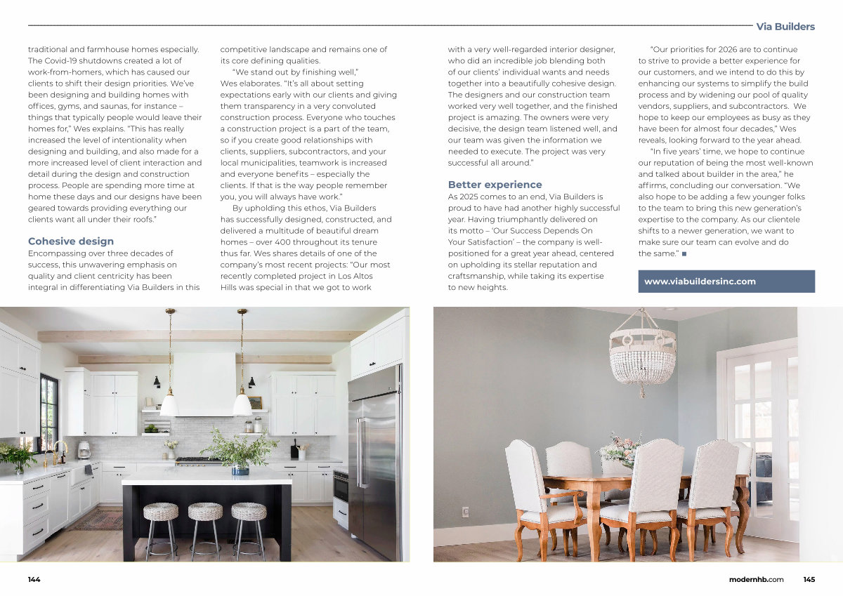 As 2025 comes to an end, Via Builders is proud to have had another highly successful year. Having triumphantly delivered on its motto –‘ Our Success Depends On Your Satisfaction’ – the company is wellpositioned for a great year ahead, centered on upholding its stellar reputation and craftsmanship, while taking its expertise to new heights.