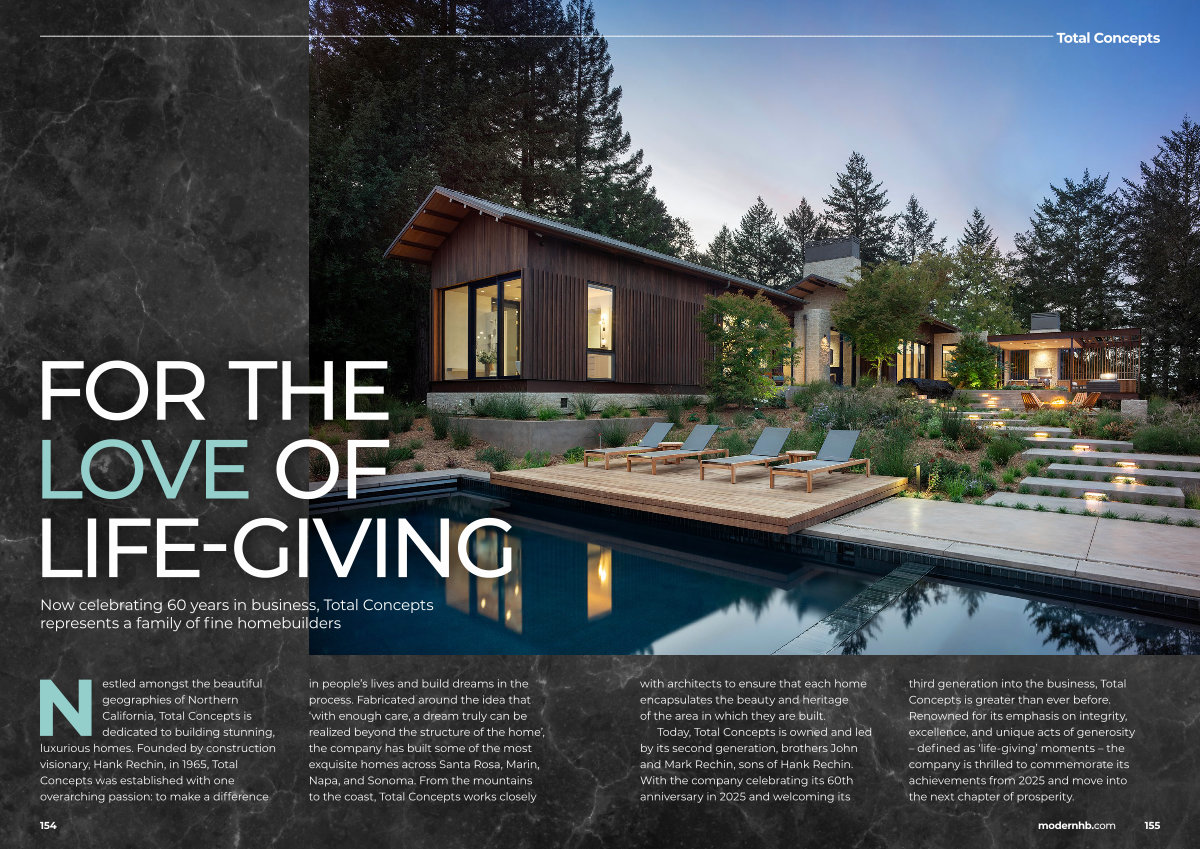 Today, Total Concepts is owned and led by its second generation, brothers John and Mark Rechin, sons of Hank Rechin. With the company celebrating its 60th anniversary in 2025 and welcoming its third generation into the business, Total Concepts is greater than ever before. Renowned for its emphasis on integrity, excellence, and unique acts of generosity – defined as‘ life-giving’ moments – the company is thrilled to commemorate its achievements from 2025 and move into the next chapter of prosperity.