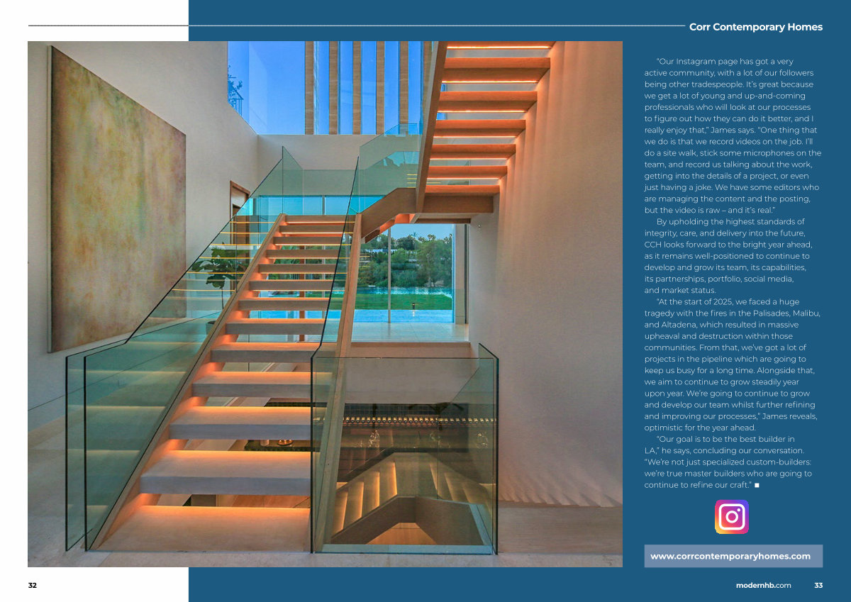 “ At the start of 2025, we faced a huge tragedy with the fires in the Palisades, Malibu, and Altadena, which resulted in massive upheaval and destruction within those communities. From that, we’ ve got a lot of projects in the pipeline which are going to keep us busy for a long time. Alongside that, we aim to continue to grow steadily year upon year. We’ re going to continue to grow and develop our team whilst further refining and improving our processes,” James reveals, optimistic for the year ahead.