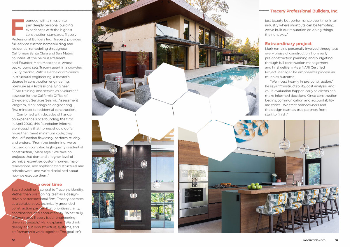 “ We invest heavily in pre-construction,” he says.“ Constructability, cost analysis, and value evaluation happen early so clients can make informed decisions. Once construction begins, communication and accountability are critical. We treat homeowners and the design team as true partners from start to finish.” modernhb. com 37