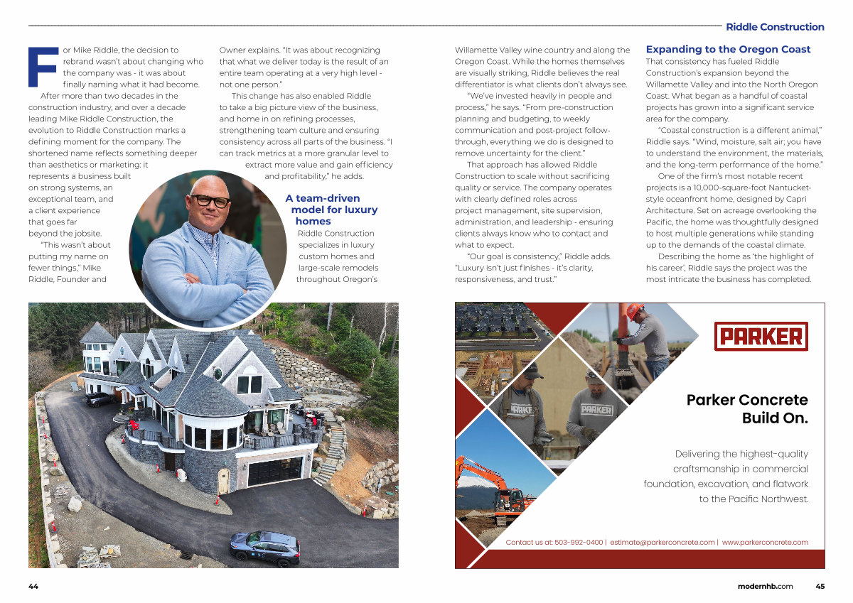 Riddle Construction specializes in luxury custom homes and large-scale remodels throughout Oregon’ s