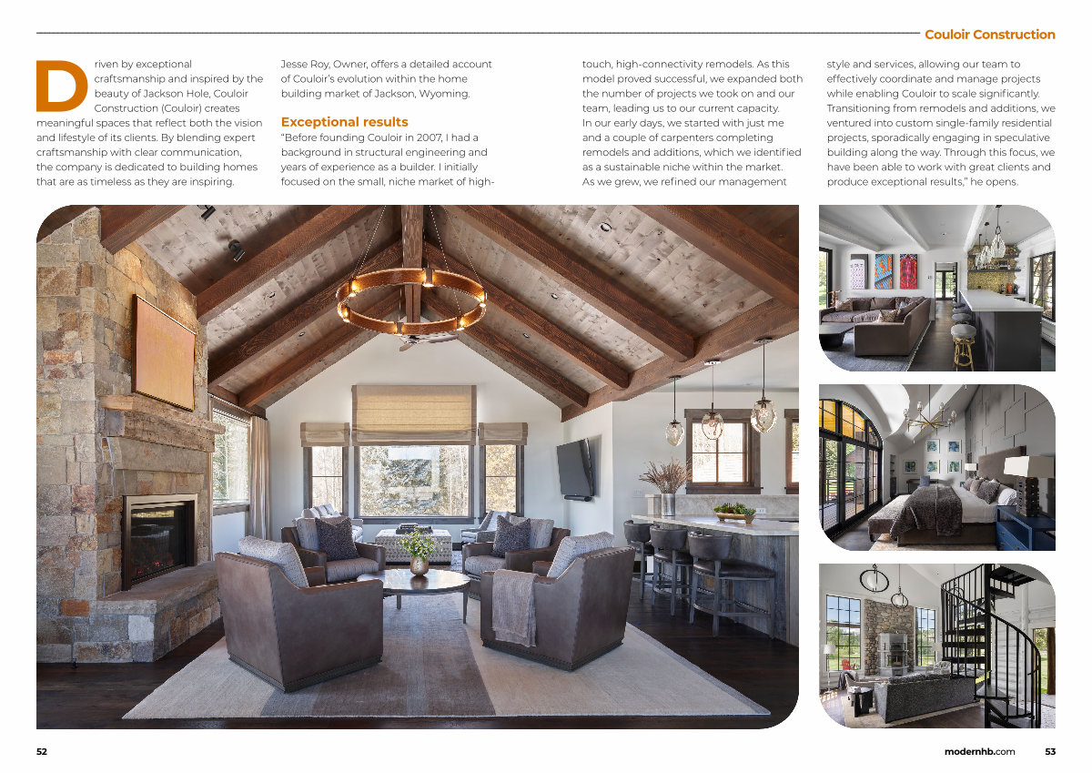 Jesse Roy, Owner, offers a detailed account of Couloir’ s evolution within the home building market of Jackson, Wyoming.