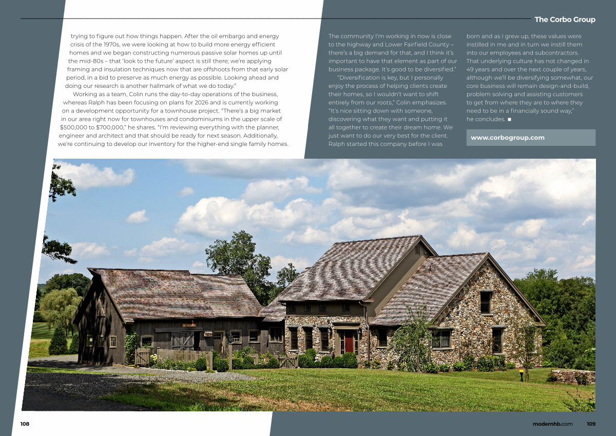Working as a team, Colin runs the day-to-day operations of the business, whereas Ralph has been focusing on plans for 2026 and is currently working on a development opportunity for a townhouse project.“ There’ s a big market in our area right now for townhouses and condominiums in the upper scale of $ 500,000 to $ 700,000,” he shares.“ I’ m reviewing everything with the planner, engineer and architect and that should be ready for next season. Additionally, we’ re continuing to develop our inventory for the higher-end single family homes.