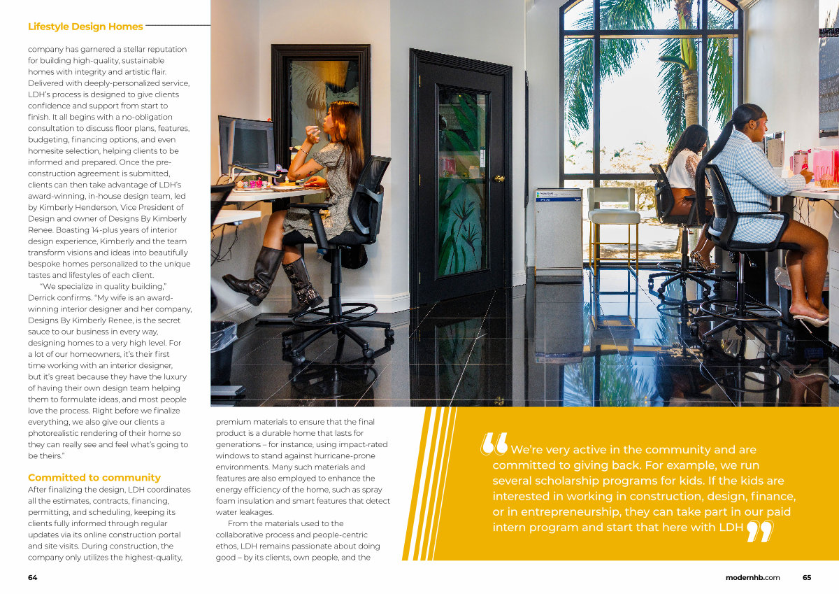 We’ re very active in the community and are committed to giving back. For example, we run several scholarship programs for kids. If the kids are interested in working in construction, design, finance, or in entrepreneurship, they can take part in our paid intern program and start that here with LDH